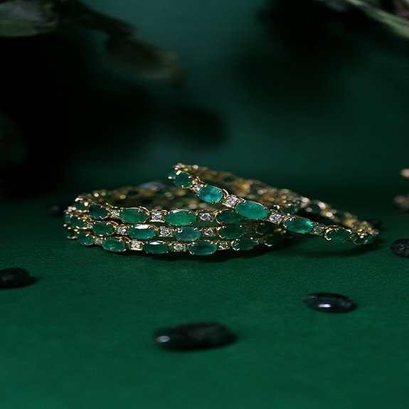 Zambian emeralds interspersed with diamonds, these bangles will surely add an emerald glow to your outfit.